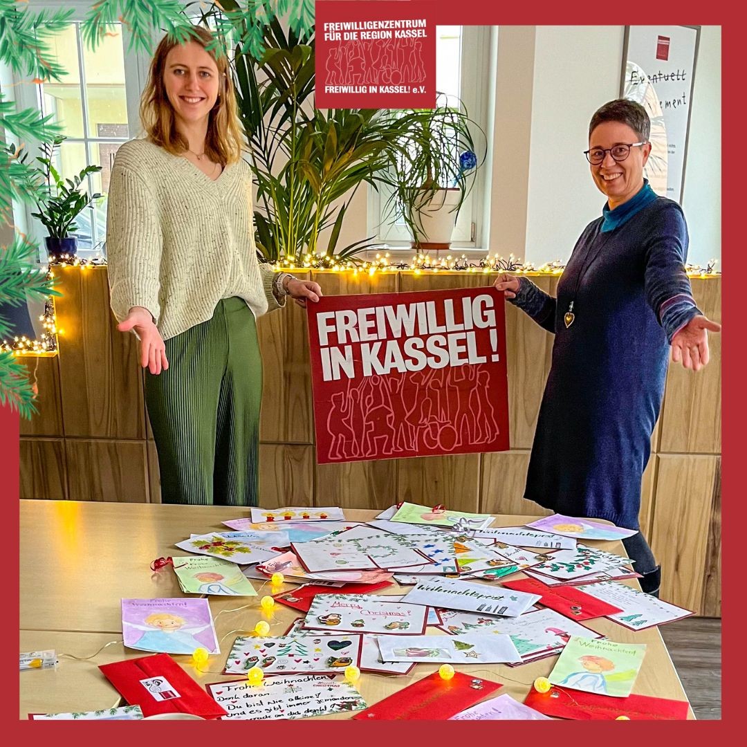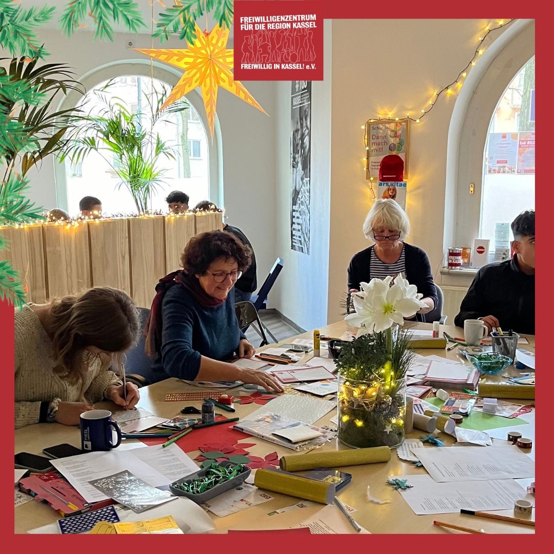 Danke an alle Menschen und Organisationen, insbesondere an Schüler*innen des FSSJ, der Jugendfeuerwehr Kassel-Harleshausen, dem Hand in Hand e.V. Nachbarschaftshilfeverein, Nachbarschaftszentrum Hafen17, dem Kunst und Kulturverein Baunatal, den Schüler*innen des Friedrichsgymnasiums, der Alexander-Schmorell-Schule, der Albert-Schweitzer-Schule, des Gustav-Stresemann-Gymnasiums Bad Wildungen, der Eschenwaldschule Eschenstruth, der Bücherei Kirchditmold, und den zahlreichen Menschen in der Stadt und dem Landkreis Kassel, die gebastelt, gemalt und geschrieben haben, an diejenigen, die zu unserem Bastelnachmittag gekommen sind und an alle, die uns Karten zugeschickt haben.