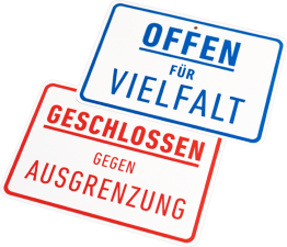 Wir unterstützen das Engagement aller Menschen unabhängig von Geschlecht, Abstammung, Hautfarbe, Herkunft, Glauben, sozialer Stellung oder sexueller Identität.